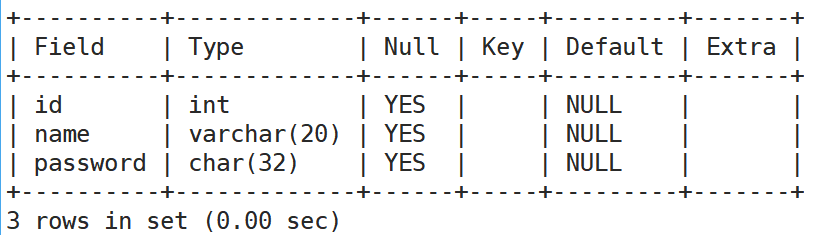 2. 查看表结构
