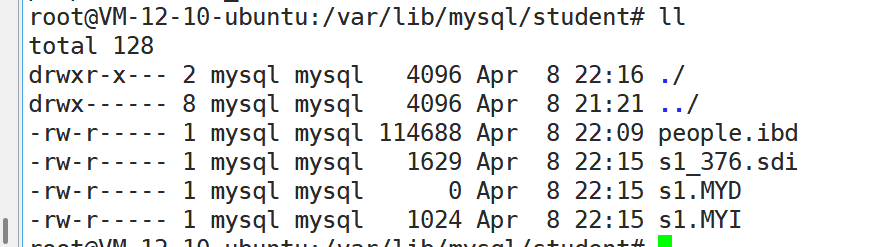 不同的存储引擎,创建表的文件不一样,people是InnoDB,s1是MyISAM
