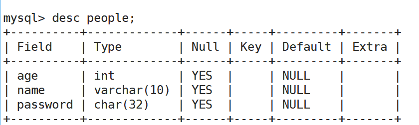 create table person(name varchar(20));