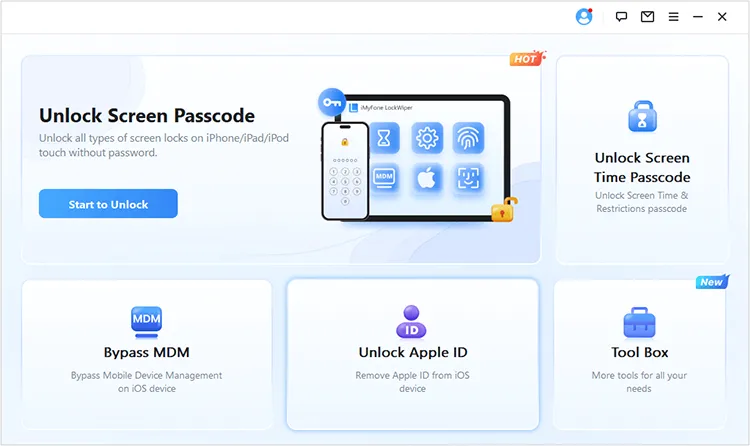 如果您不想使用 Finder 或 Apple Devices 应用来解锁 iPhone,可以试试iPhone Unlocker 。这款软件只需简单几步即可移除 iPhone 密码。此外,它还能在您忘记 Apple ID 时帮助您移除 Apple ID(无需密码) ,解锁时间屏幕密码等等。它是一款功能强大的 iOS 设备解锁工具。需要注意的是,解锁过程中它会清除 iPhone 上的所有数据。