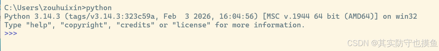 >>>后面输入exit()并回车,或者按Ctrl + Z然后回车,退出 Python 环境。 -