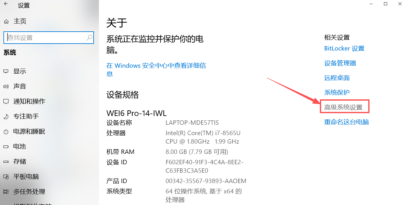 点击 "高级系统设置":
