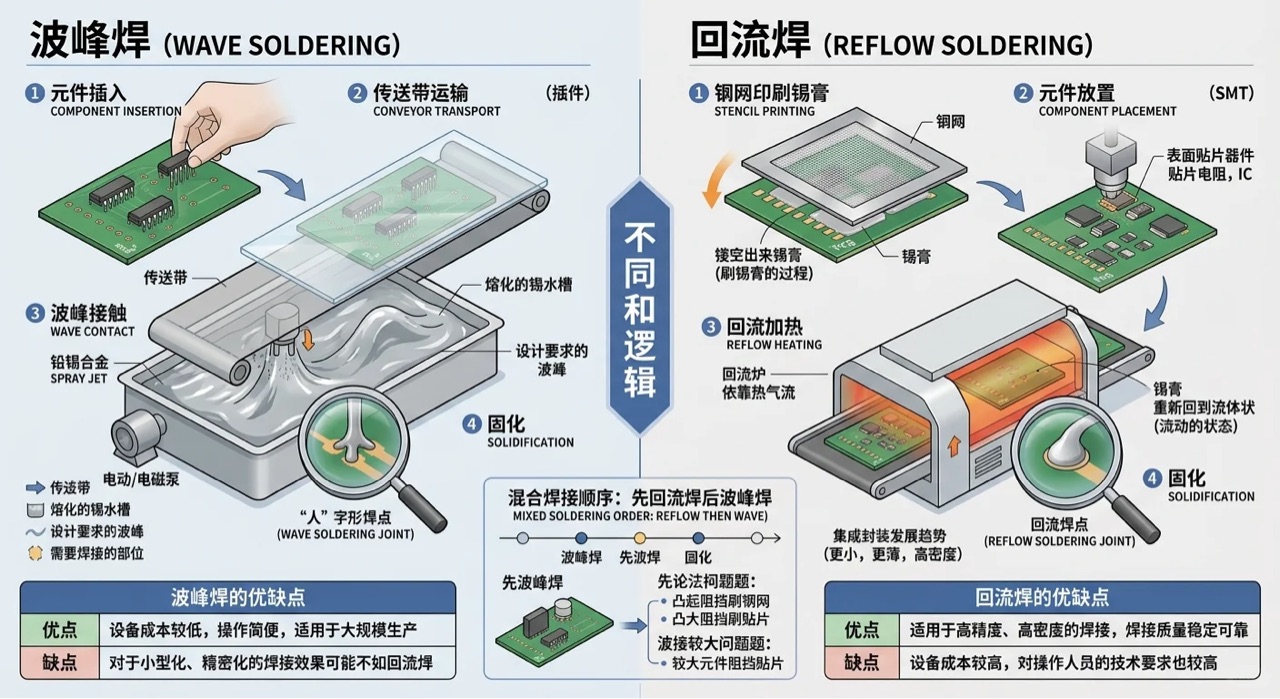 在电子产品的生产制造中,焊接是连接元器件与电路板、保障电路稳定工作的关键工序。无论是日常使用的手机、电脑,还是工业控制、新能源设备的电路板,都离不开自动化焊接技术的加持。波峰焊与回流焊作为电子行业最常用的两种自动化焊接工艺,各司其职,广泛应用于不同封装类型的元器件焊接。而对于硬件研发人员、电子专业学习者而言,了解两种焊接方式的原理与区别,也是必备的基础专业知识。