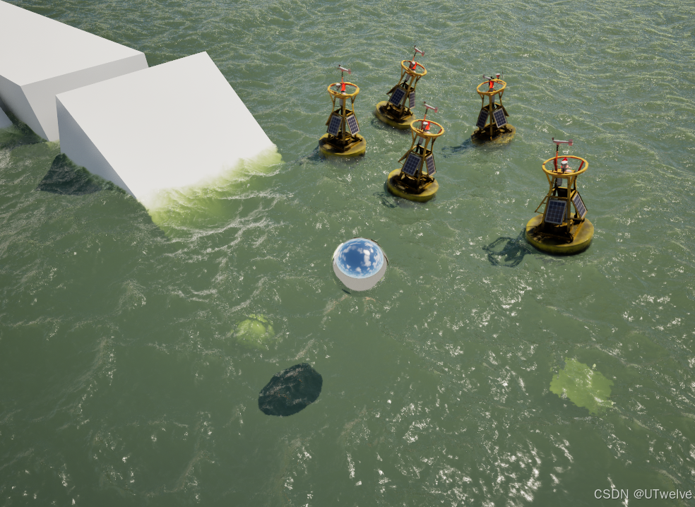 在极高浓度下,物理算出的总衰减系数极大,且单颗泥沙的前向散射极强(相函数不对称因子 g ≈ 0.85 g \approx 0.85 g≈0.85)。此时,UE5 的 Single Layer Water 底层着色器会因为 *简化的单次散射 *而导致水体渲染成死黑。