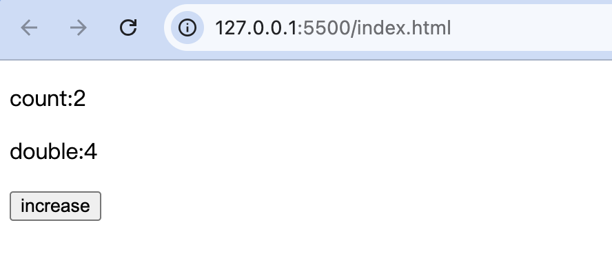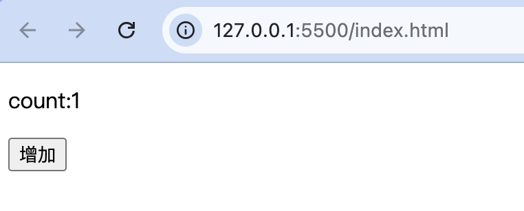 运行代码后,页面上显示的是count的初始值0;点击"增加count"按钮后,显示的数量会自动增加1,如图所示。