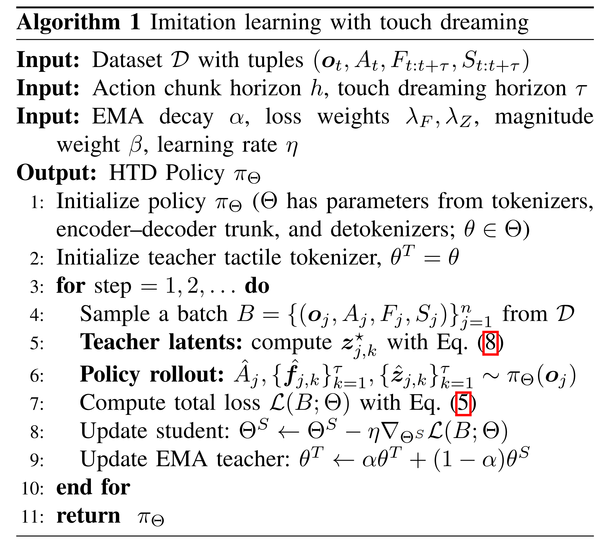 此外,作者使用一个基于 EMA 的触觉 tokenizer 作为教师(第 III-E 节),以获得稳定的潜在标签,并监督学生去匹配这些教师潜变量