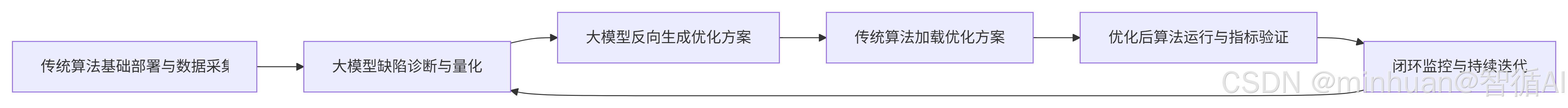 - 协同流程:传统算法运行→输出结果→大模型诊断缺陷→输出优化方案→传统算法加载优化方案→重新运行→结果达标。