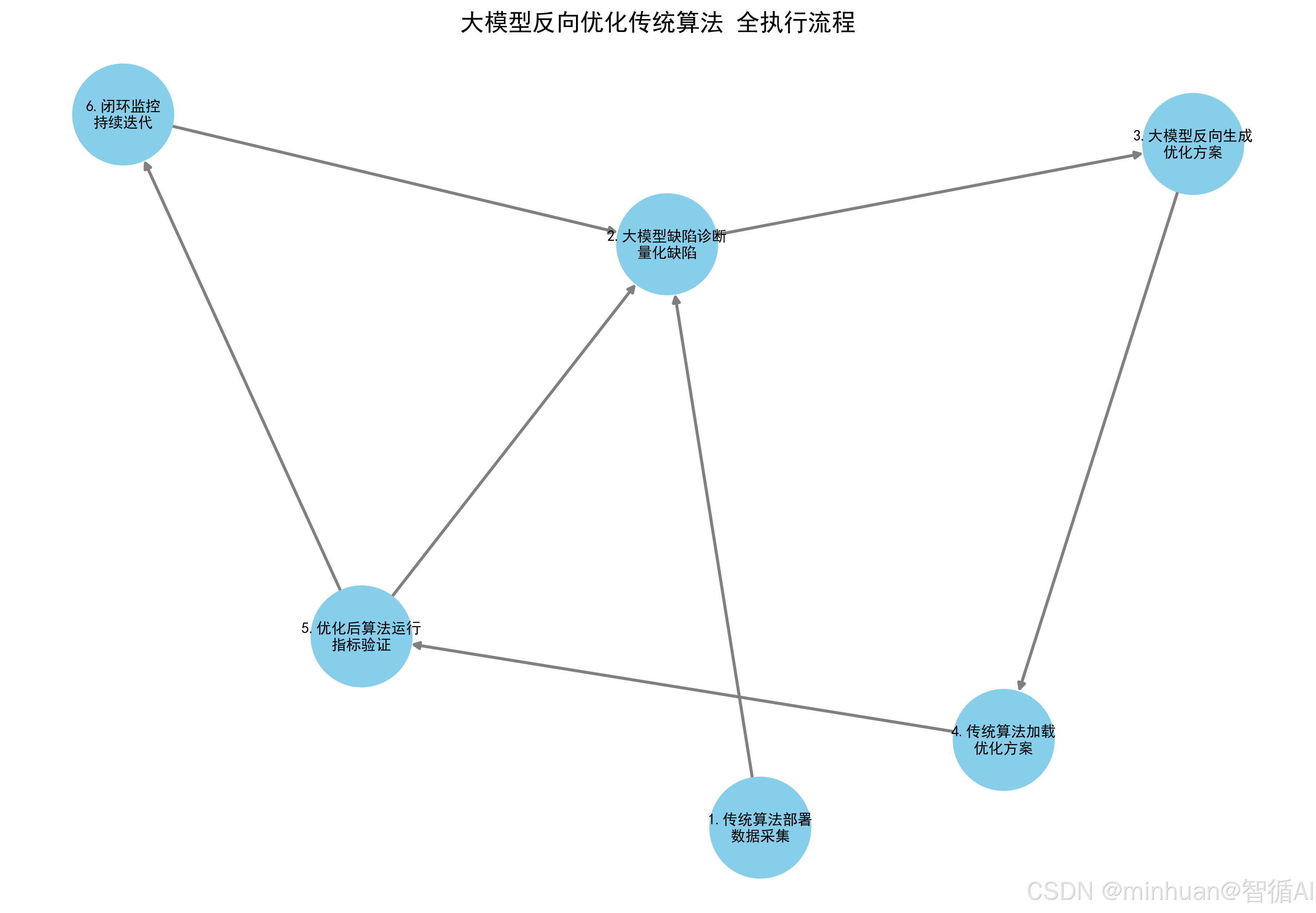 - 传统算法是"输入→逻辑→输出",大模型反向优化是"输出错误→逆向拆解逻辑→定位错误节点→修正节点"。
