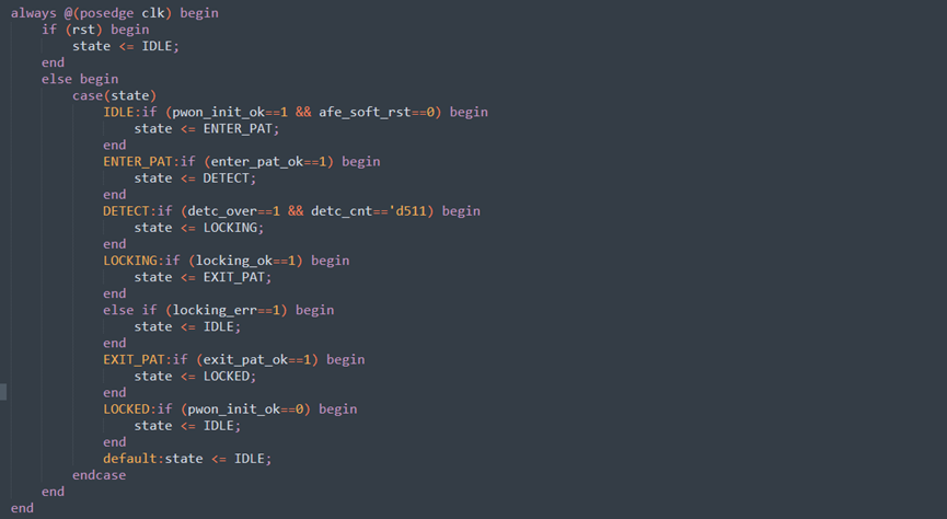 EXIT_PAT状态:控制AFE退出测试模式,接收到exit_pat_ok1跳转到LOCKED状态;