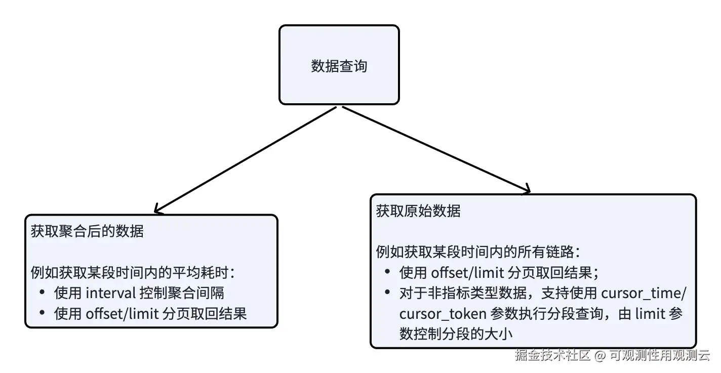 | 9 | $.queries[*].query.cursor_token | String | 否 | 在分段查询中,将 cursor_token 设置为响应中的 next_cursor_token 字段的值,以确保相同时间戳的数据不被分段跳过,注意,分段查询仅在存储引擎为 GuanceDB 3.0 时生效 |