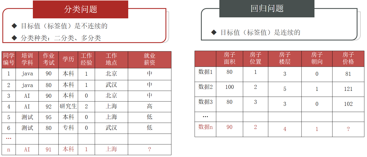 有监督学习:输入数据是由输入特征值和目标值所组成,即输入的训练数据有标签的。