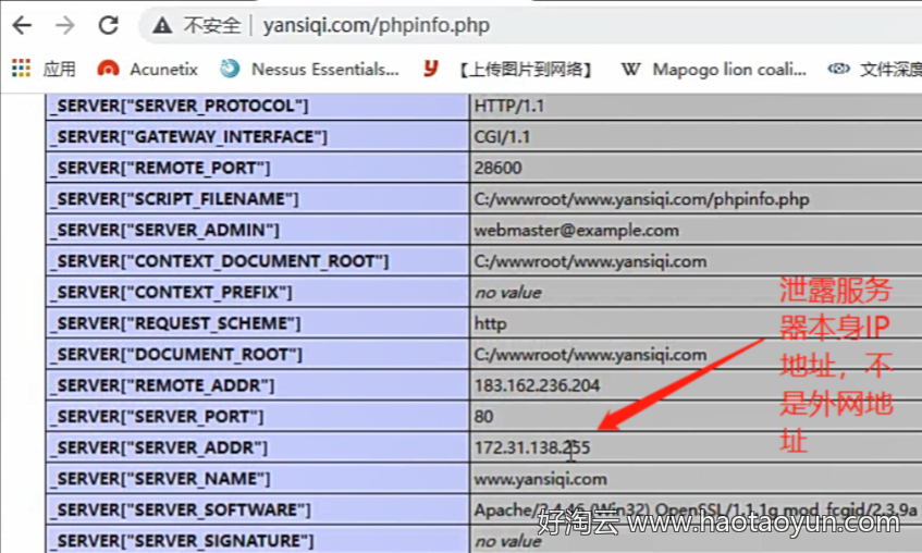 如果目标网站存在遗留的 phpinfo.php 文件,可以在 SERVER['SERVER_ADDR'] 字段直接看到服务器的真实 IP。