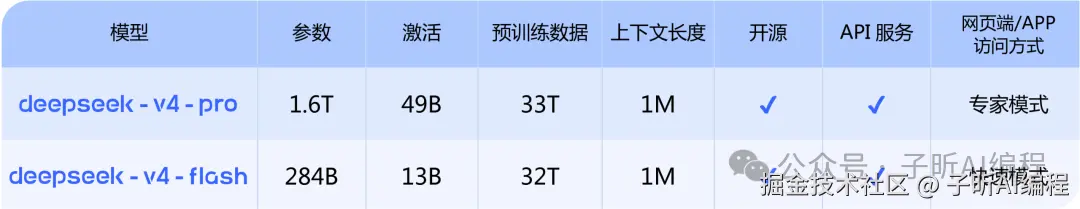 这次发了两个版本,都是 MoE 架构,都标配 1M 上下文。