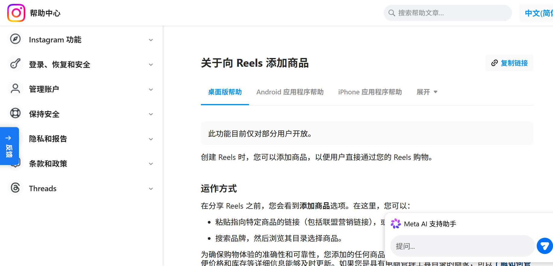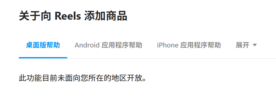 目前,Reels商品链接功能仅在少数市场(5个国家)进行测试,并计划在春季进一步扩大范围。即使你满足所有条件,功能也不一定立即开放给你的账号,这属于平台的灰度测试机制。