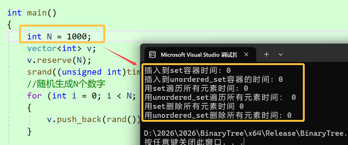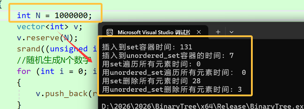 //分别输出在set容器和unordered_set容器中查找这N个数所用的时间