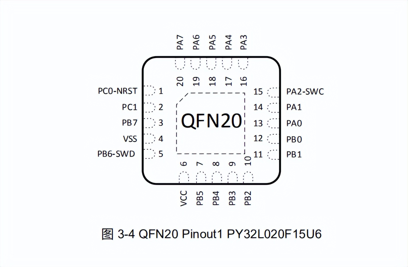 PY32L020系列是一款高集成度、低功耗、高性价比的32位MCU,适合从消费电子到工业控制的各种应用场景。芯片采用高性能的 32 位 ARM® Cortex®-M0+ 内核,嵌入 24Kbytes Flash 和 3 Kbytes SRAM 存储器,最高工作频率 48 MHz。芯片集成 I2C、SPI、USART 等通讯外设,1 路 12 位 ADC,2 个 16 位定时器,以及 2 路比较器。