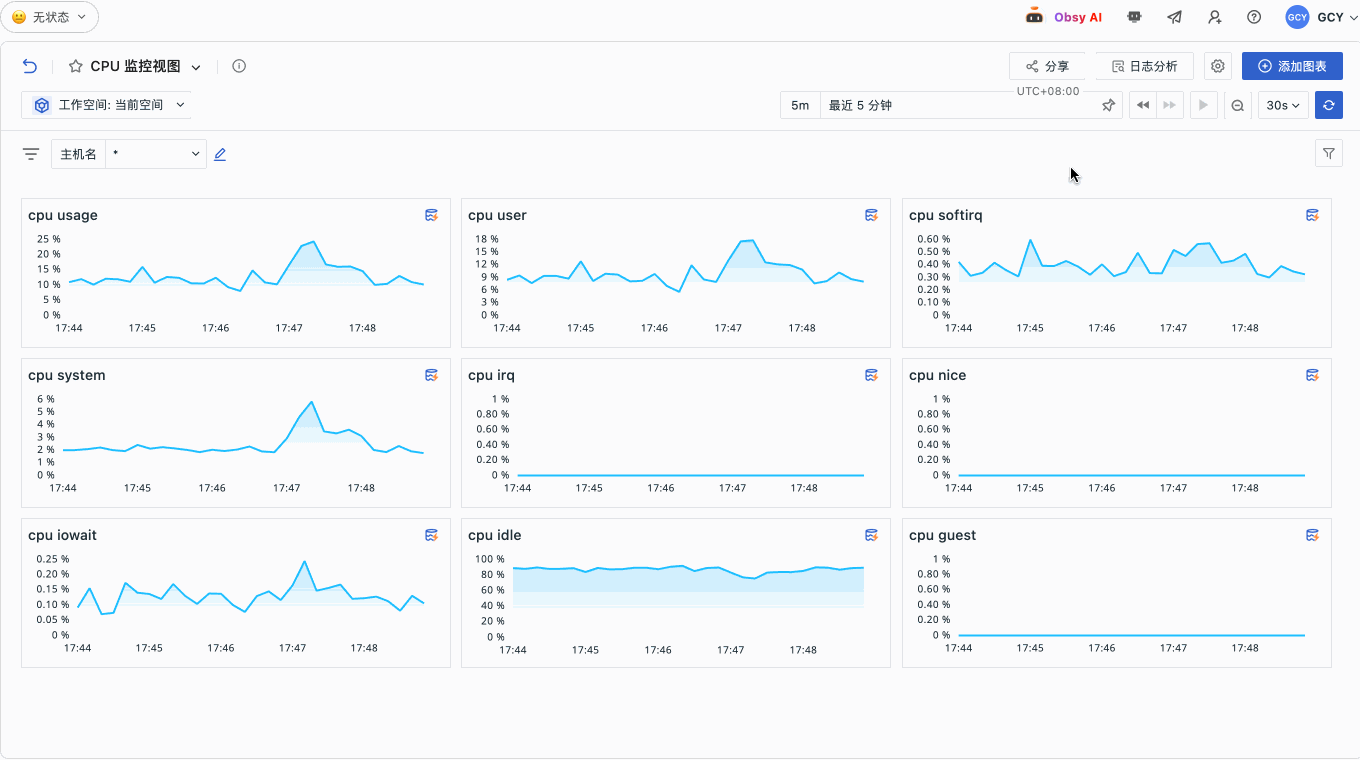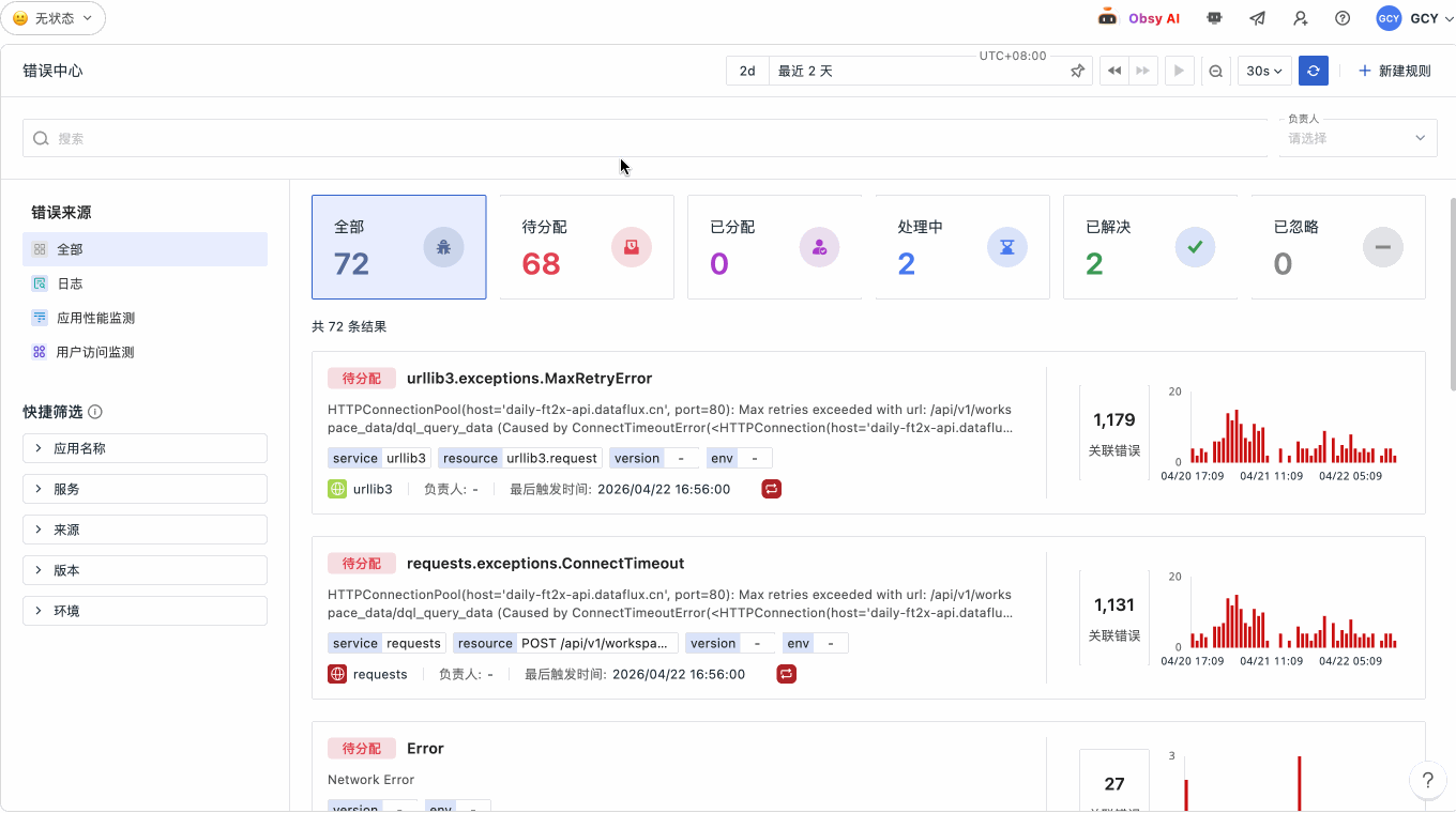 1、Obsy AI 在平台全局调整为右侧抽屉式打开,支持自然语言问答、错误分析、AI 生成仪表板等。