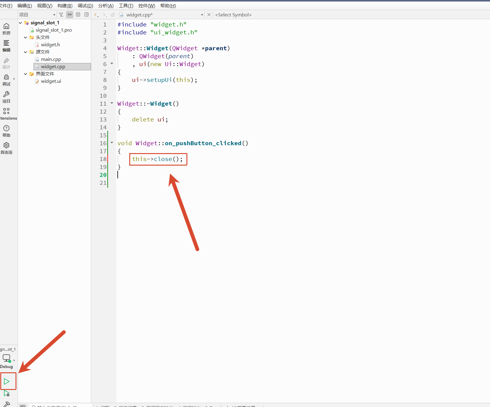 - 点击widget.ui