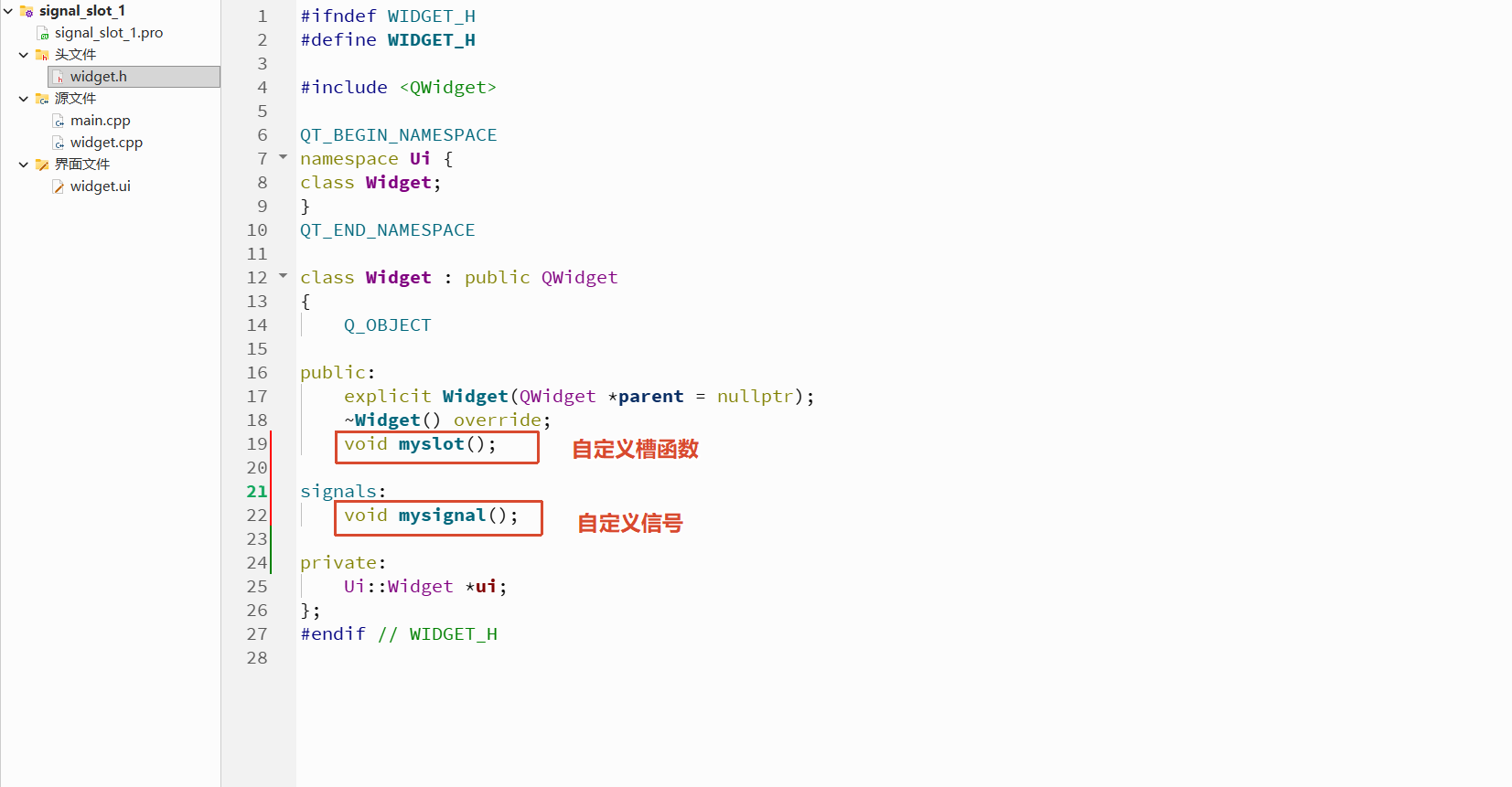 - 早期需要写到"public slots" 下,现在可以直接写到"public"作用域或全局中