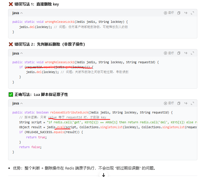 | 防误删 | 需 Lua 脚本保证原子判断 + 删除 | 内置 Lua 脚本实现 |
