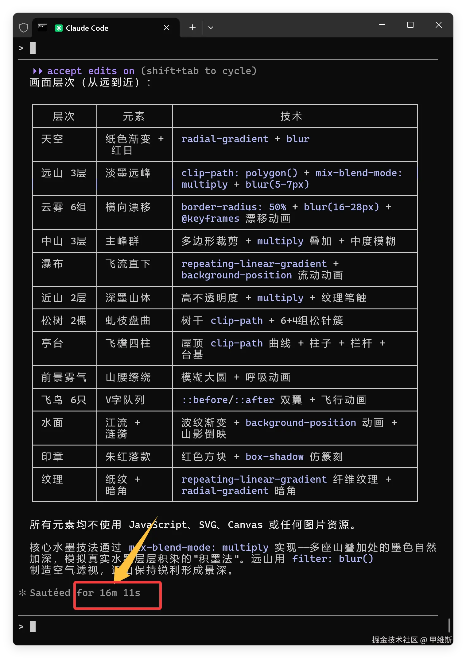 写一个页面花了 16 分钟,这个时间 Opus 都能从零开始开发一个项目 MVP 版本了。