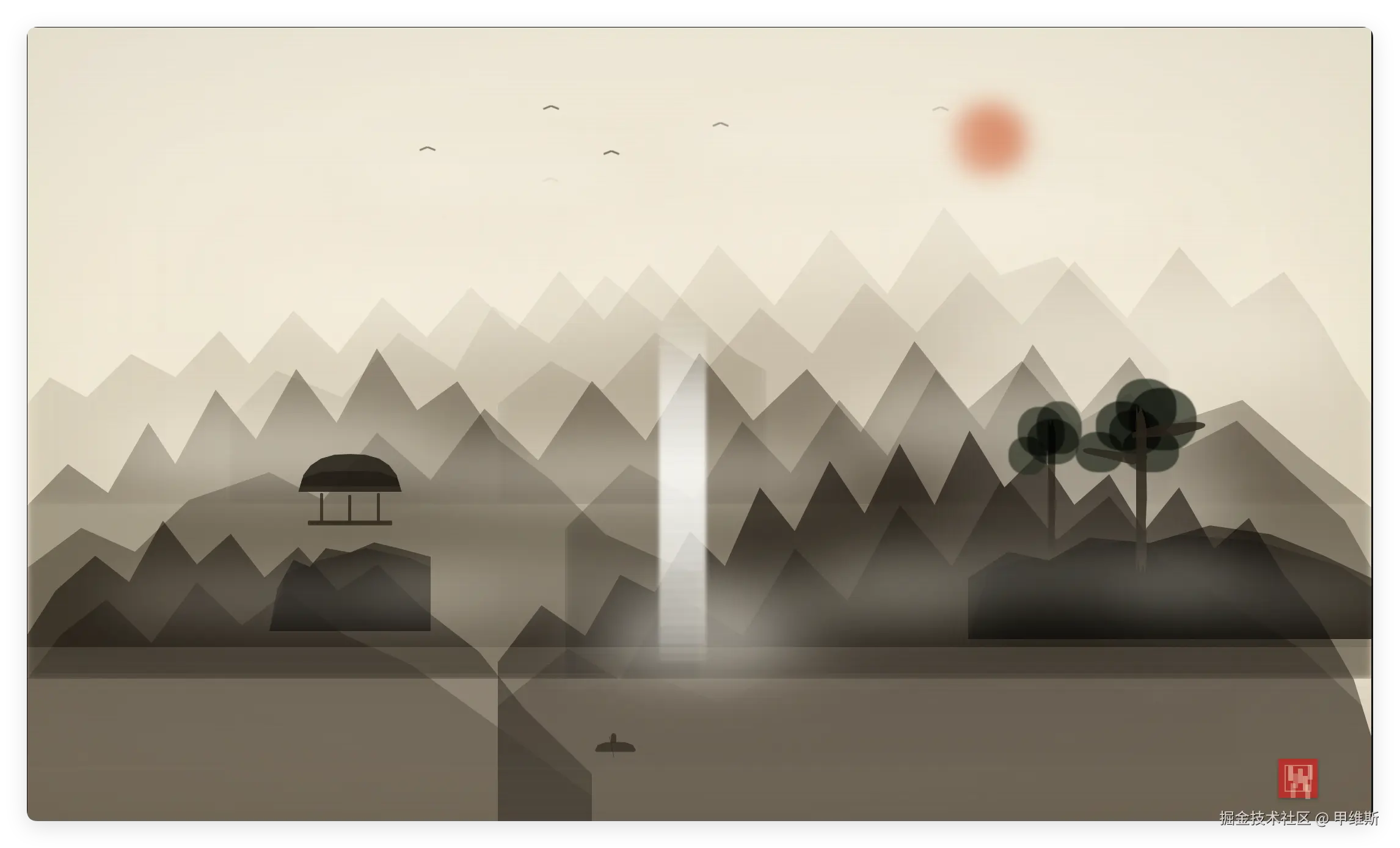 这个例子也很好玩,要实现动态效果,但是只能用 CSS,除了实现效果还得"写意"。