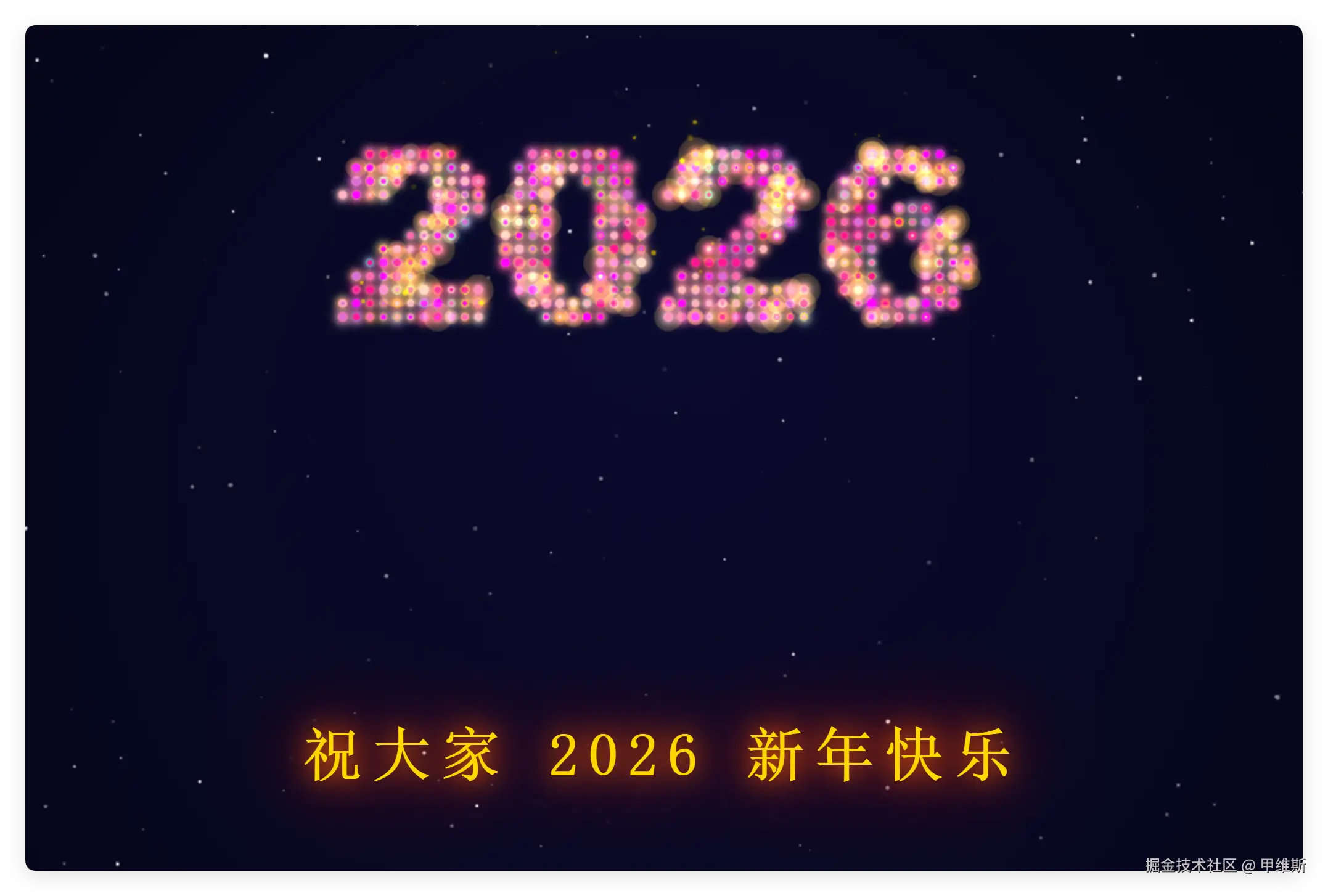 这个例子能到优秀的水平了,整体画面感和效果不如 Opus,但是最后这个汇聚成 2026 的效果赢了所有人。