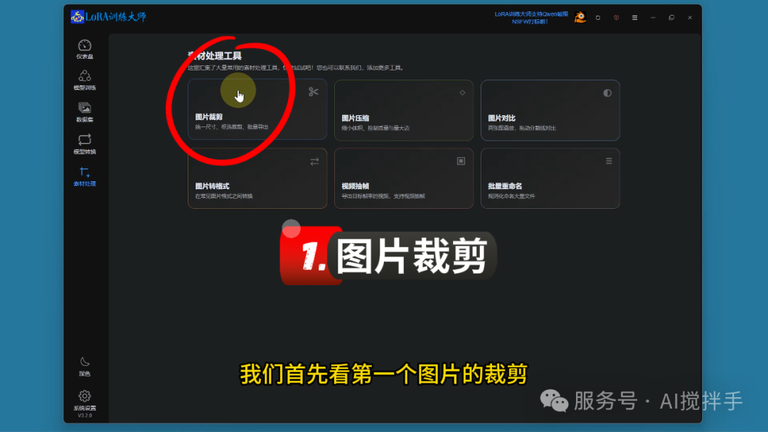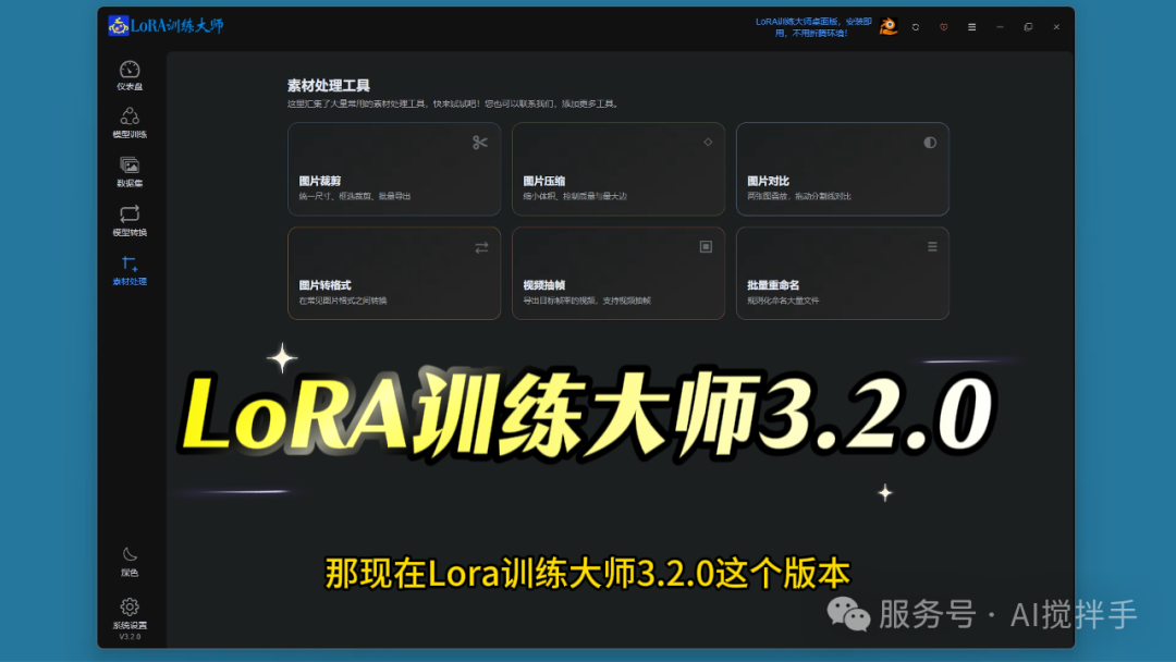 工具集成:LoRA训练大师3.2.0版本集成了训练素材处理的常用工具,避免了使用分散的第三方工具