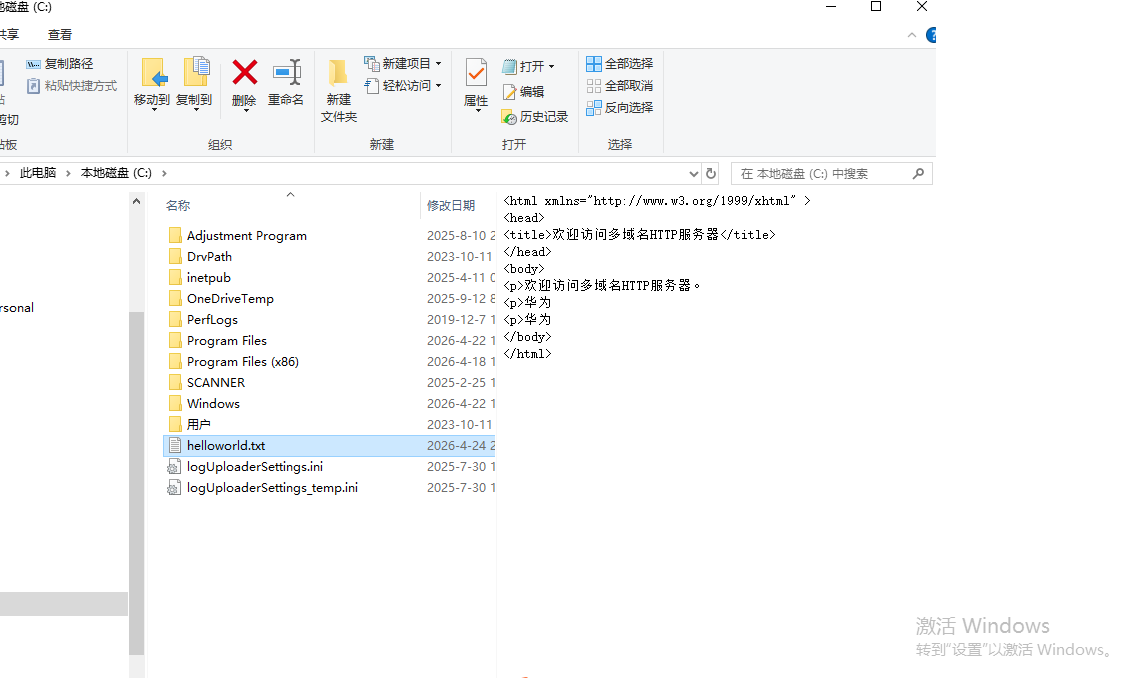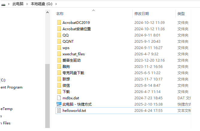 打开本地c盘发现刚刚创建好的helloworld.txt文件从G盘传过来了。