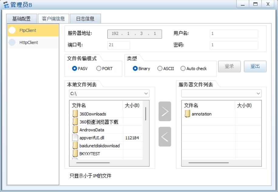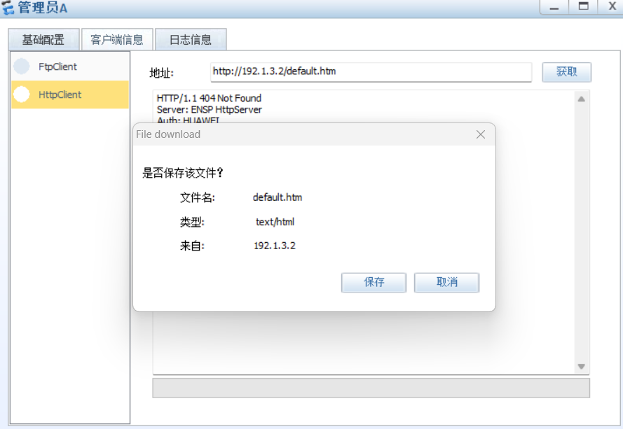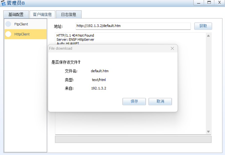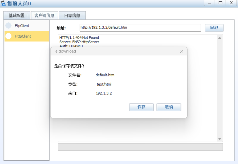 http://192.1.3.2; - FTP 访问 :客户端连接