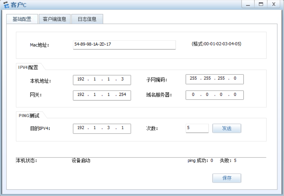 192.1.3.1,可成功登录并上传 / 下载文件; - Ping 测试 :客户C不能