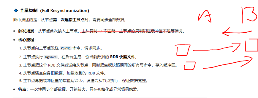 - 从节点刚接入主节点时,必须先做一次全量复制,把基础数据同步完成。