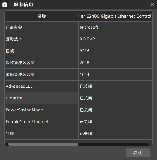 - 诊断工具会设置缓冲区、巨帧以及关掉节能属性