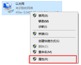 找到连接相机的"以太网",右键点击该以太网,选择"属性"。可以打开GalaxyView看看相机是哪个口