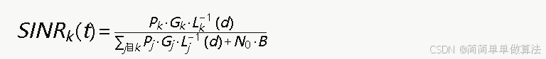 其中Pk为网络nk的发射功率,Gk为天线增益,Lk(d)为距离d处的路径损耗,N0为噪声功率谱密度,B为信道带宽。