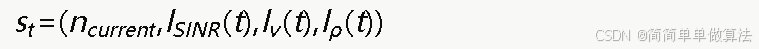 状态空间S:每个状态st由用户当前接入的网络编号、归一化SINR等级、速度等级和网络拥塞等级联合表征: