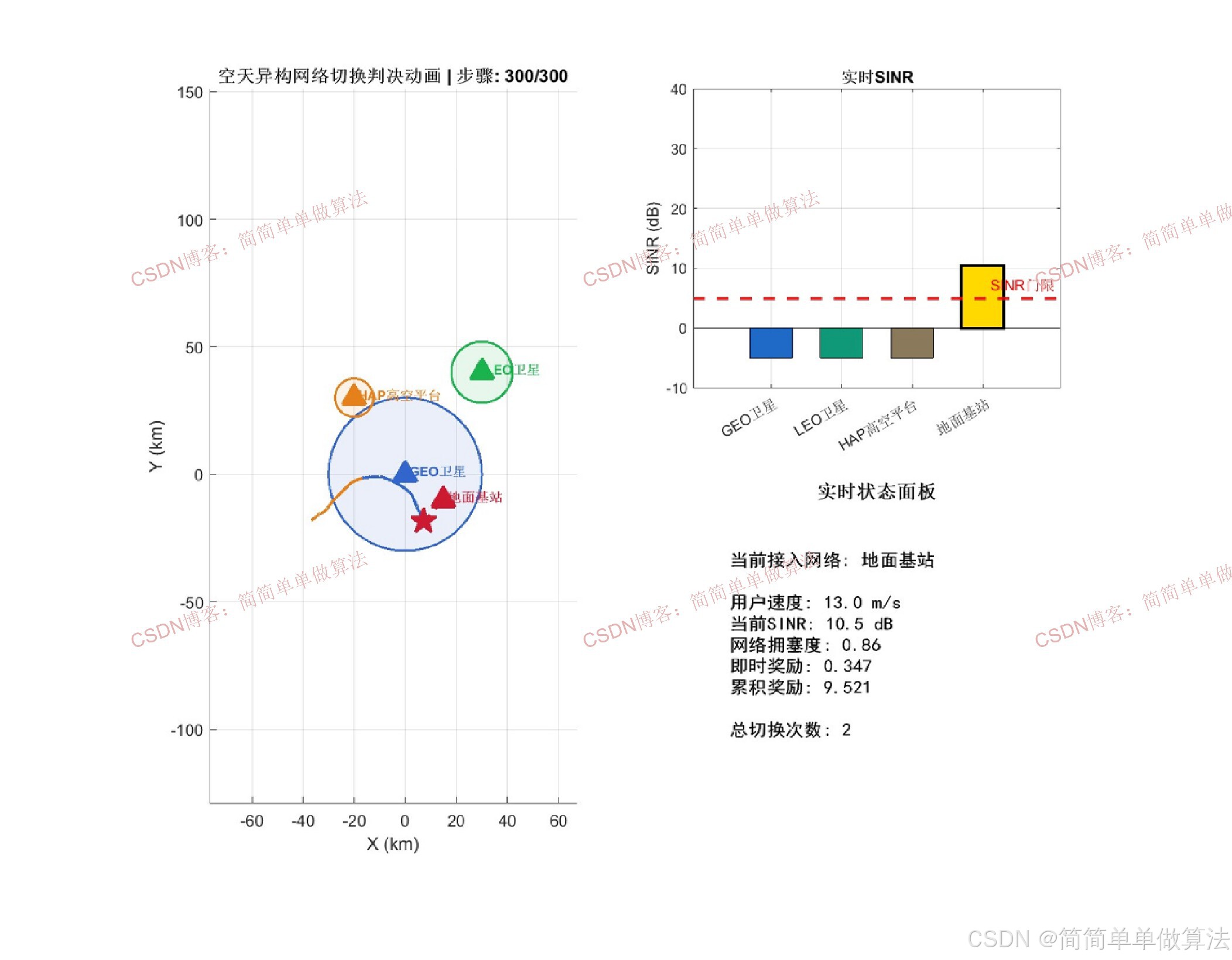 随着空天地一体化网络(Space-Air-Ground Integrated Network, SAGIN)的快速发展,小型空中飞行平台(如无人机UAV)在通信中继、应急救援、边缘计算等领域的应用日益广泛。空天异构无线网络融合了卫星网络、高空平台(HAP)、低空无人机网络和地面蜂窝网络等多种异构网络接入方式,为用户提供无缝覆盖和多样化的通信服务。然而,当小型空中飞行平台在复杂空天异构环境中高速移动时,频繁的网络切换问题成为制约服务质量(QoS)的关键瓶颈。