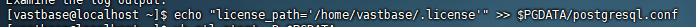 echo "license_path='/home/vastbase/.license'" >> $PGDATA/postgresql.conf