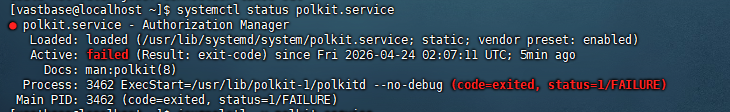 根据错误提示使用命令systemctl status polkit.service 去查询就会看到如何内容: