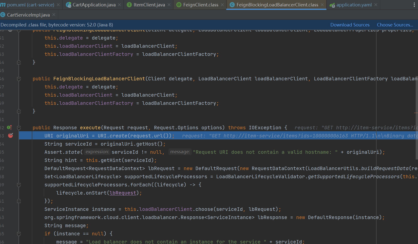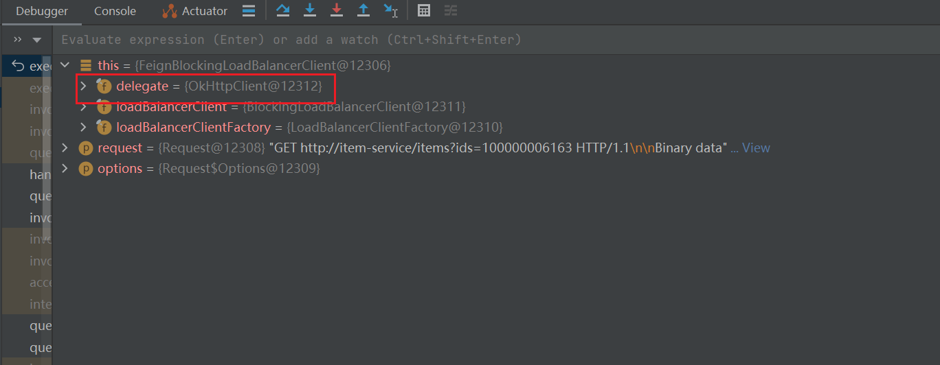 我们可以打断点验证连接池是否生效,在org.springframework.cloud.openfeign.loadbalancer.FeignBlockingLoadBalancerClient中的execute方法中打断点: