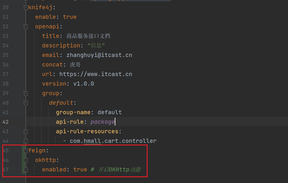 在cart-service的application.yml配置文件中开启Feign的连接池功能:
