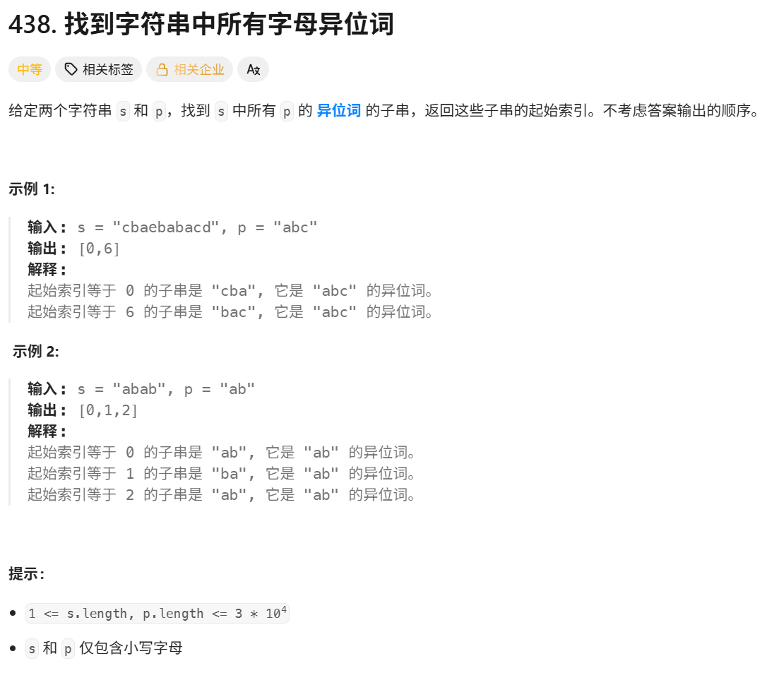 这里的难点是Arrays.equals(arr1,arr2)方法,我们指定equals默认底层是==,比较引用数据类型时只比较地址,而Arrays中的equals方法是比较数组内容是否完全一致,在这里可以用来检验字母异位词。