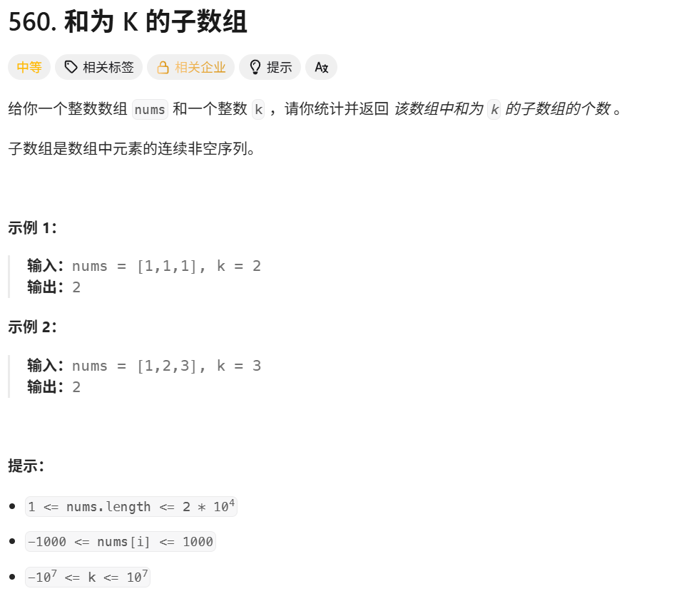 public int subarraySum(int[] nums, int k) {