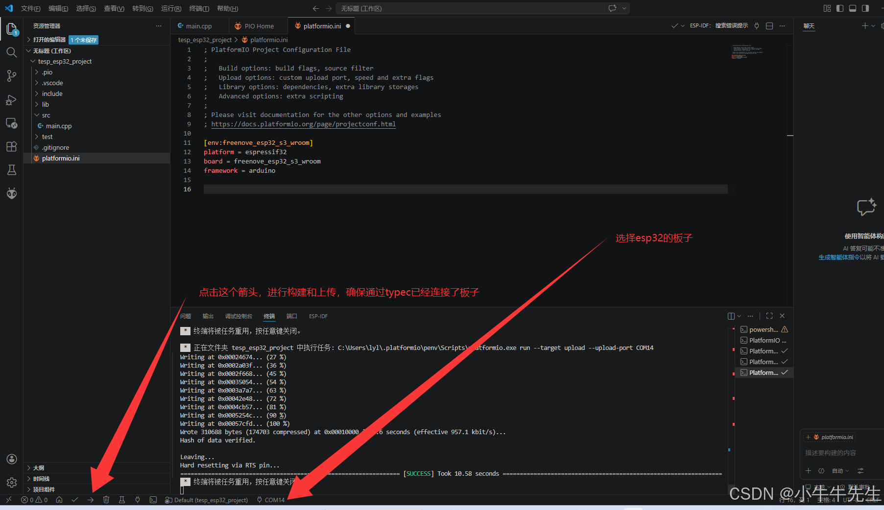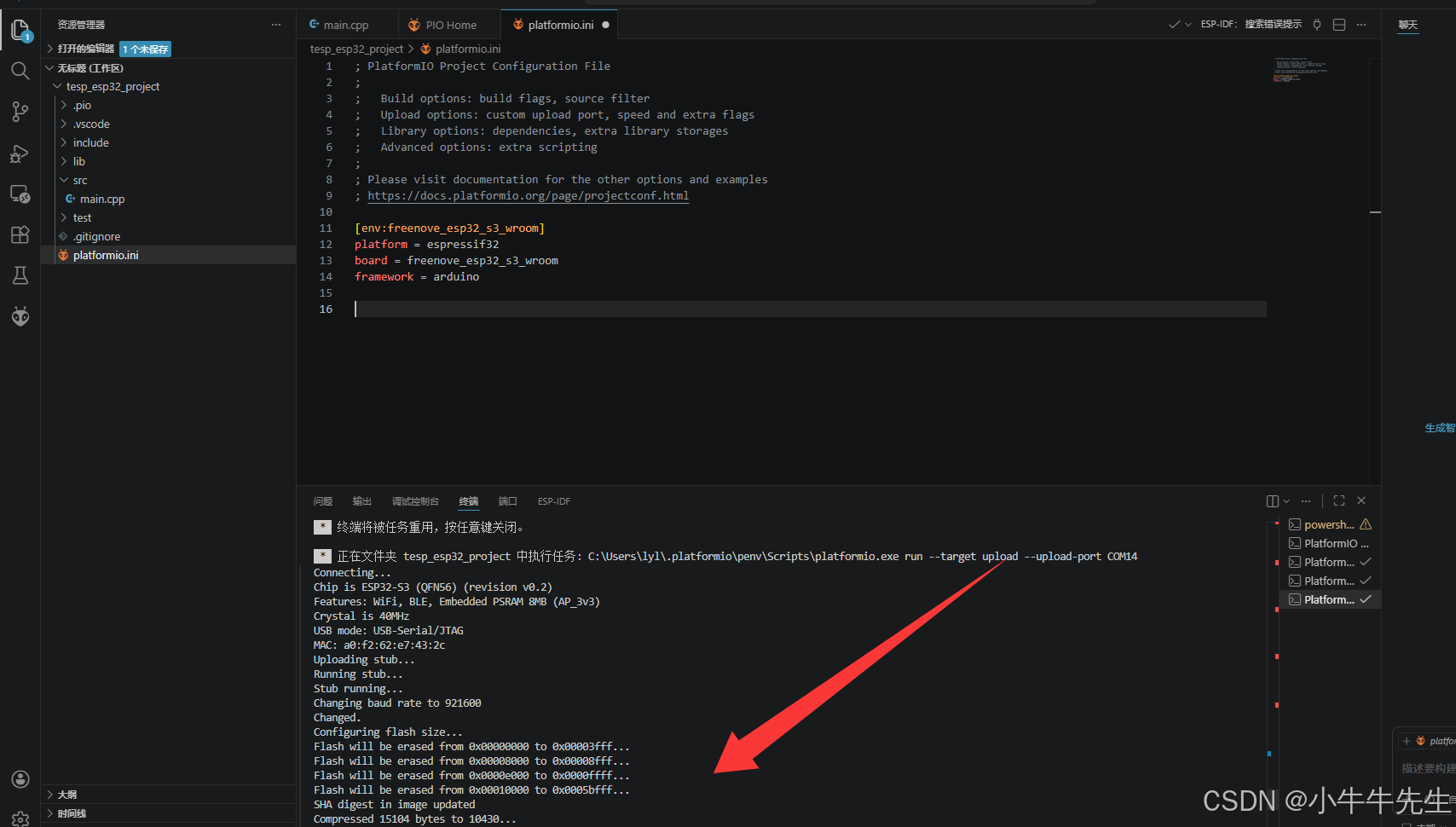 开发环境:Visual Studio Code+PlatformIO + ESP32-S3 + Arduino 框架