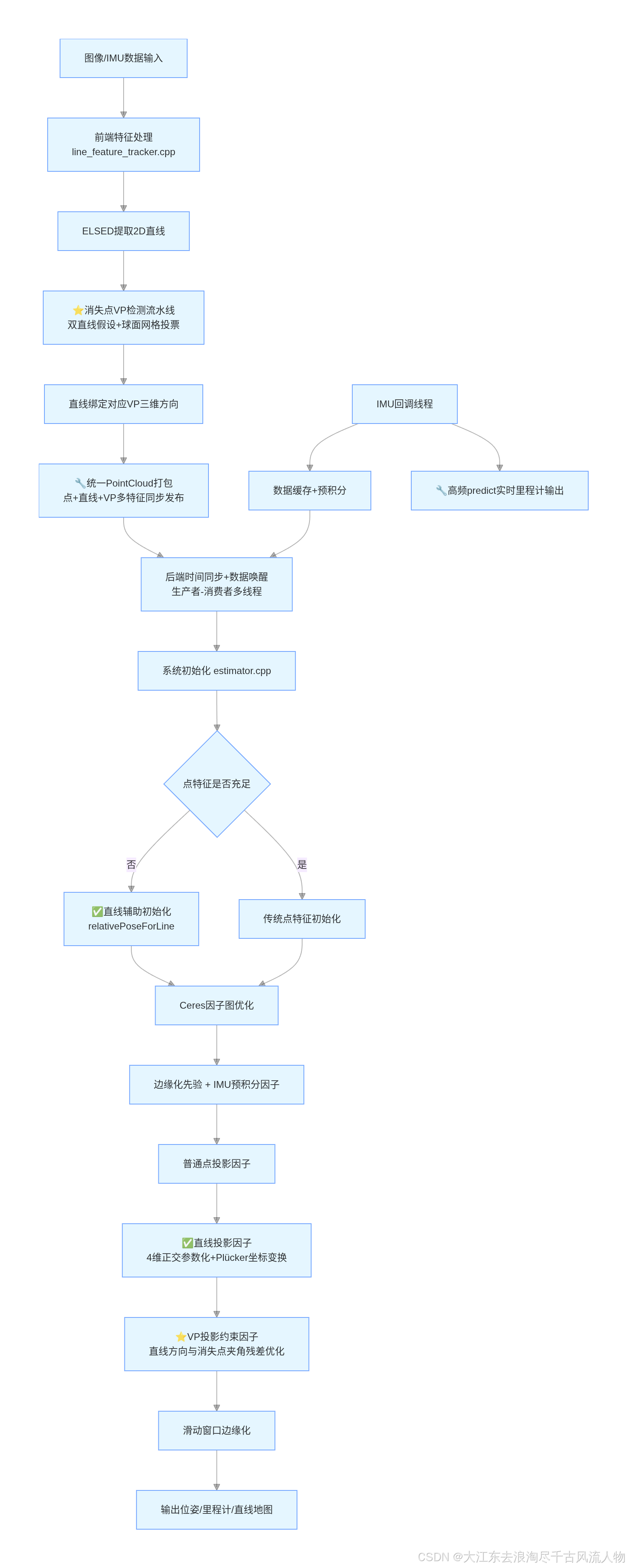 - 新增消失点投影因子,利用曼哈顿世界假设(室内/城市环境中存在大量平行直线),强化几何约束;