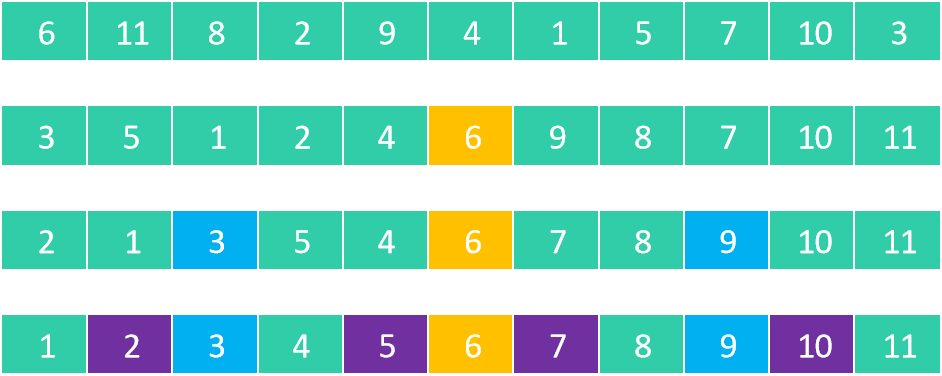 以数组 [3, 5, 1, 2, 4, 6, 9, 8, 7, 10, 11] 为例: