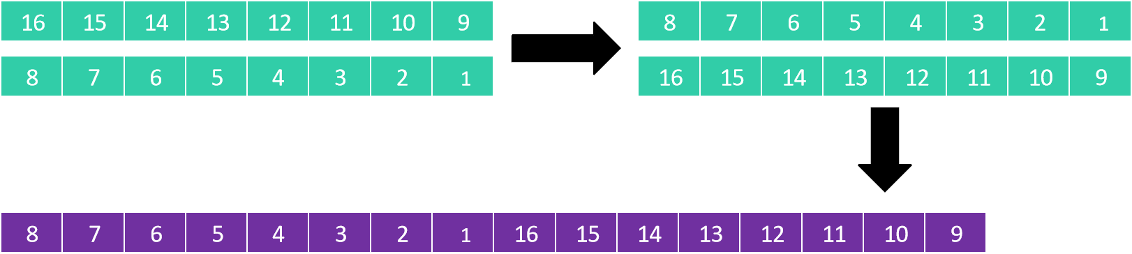[8, 7, 6, 5, 4, 3, 2, 1, 16, 15, 14, 13, 12, 11, 10, 9]