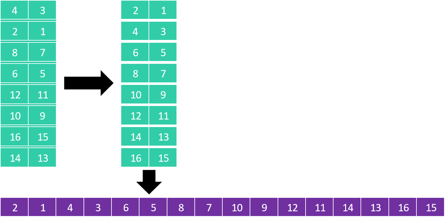 [2, 1, 4, 3, 6, 5, 8, 7, 10, 9, 12, 11, 14, 13, 16, 15]