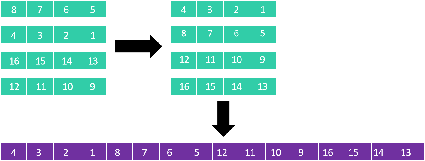 [4, 3, 2, 1, 8, 7, 6, 5, 12, 11, 10, 9, 16, 15, 14, 13]