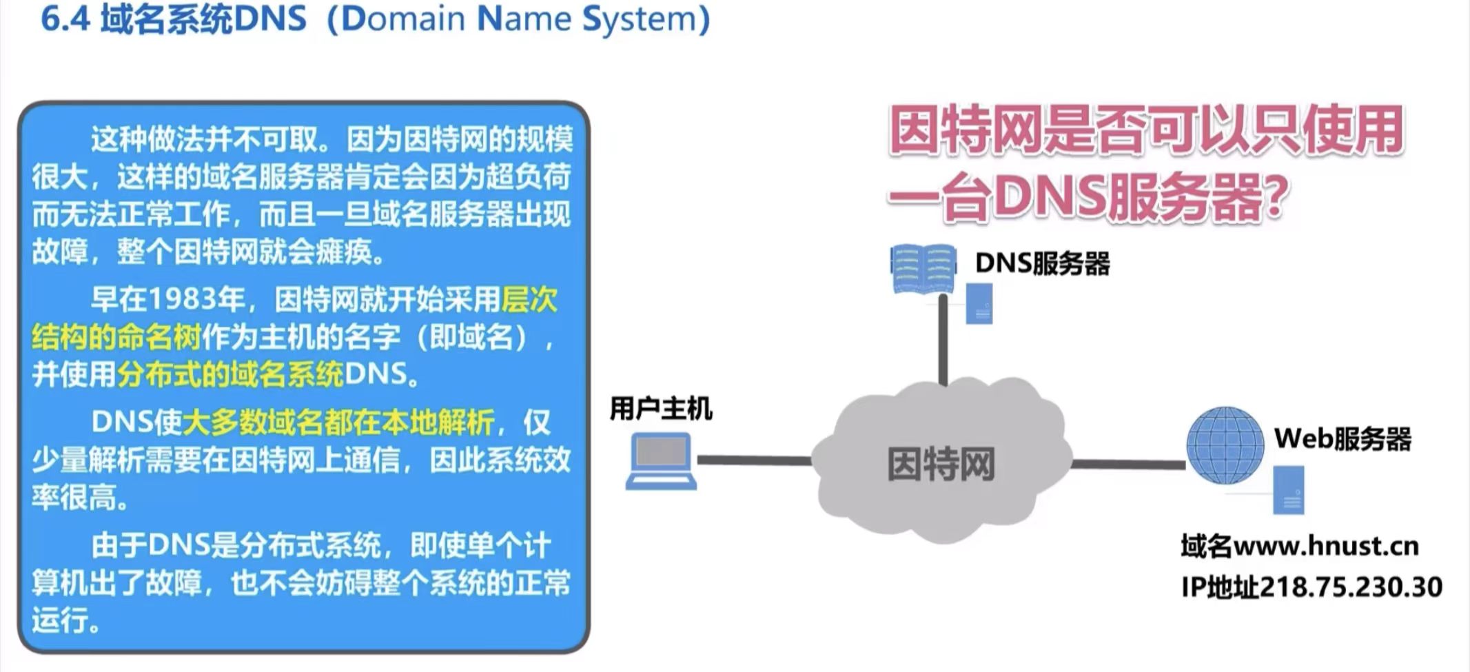 核心作用:把好记的域名(如www.baidu.com)→ 翻译成难记的IP地址,实现用户便捷访问网络。